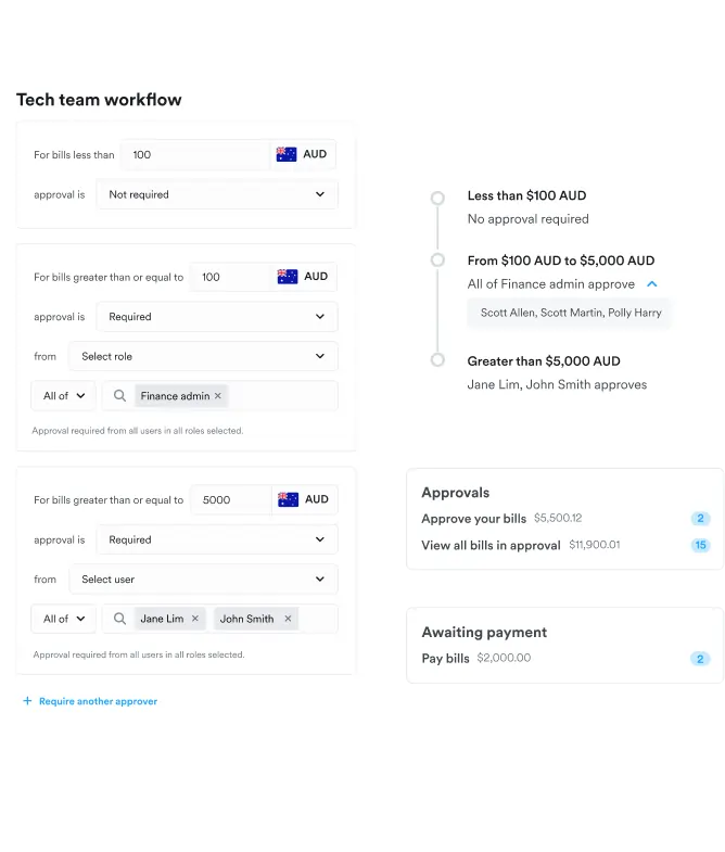 Add an extra layer of security by setting up additional payout approvals on top of your existing bill approval workflows.