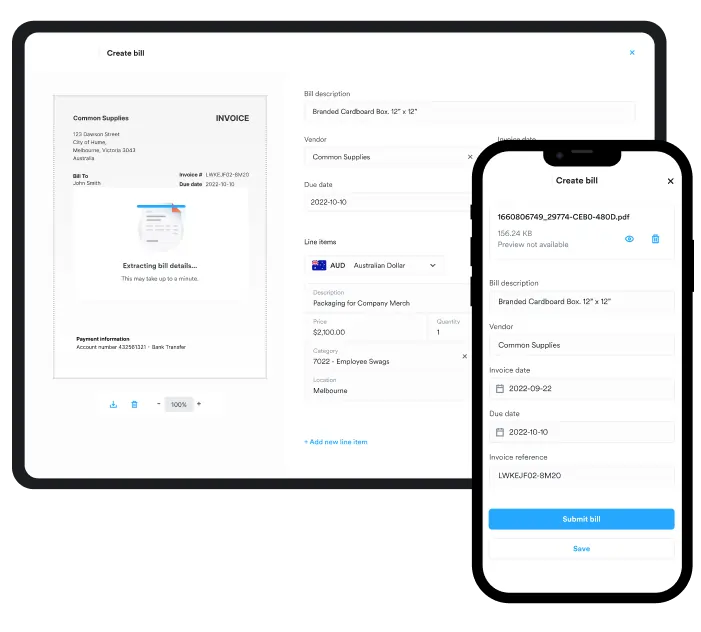 Upload or email your bills, and Quoterite Pay powered by Airwallex will automatically capture all essential data using OCR technology, saving you time and minimising errors.