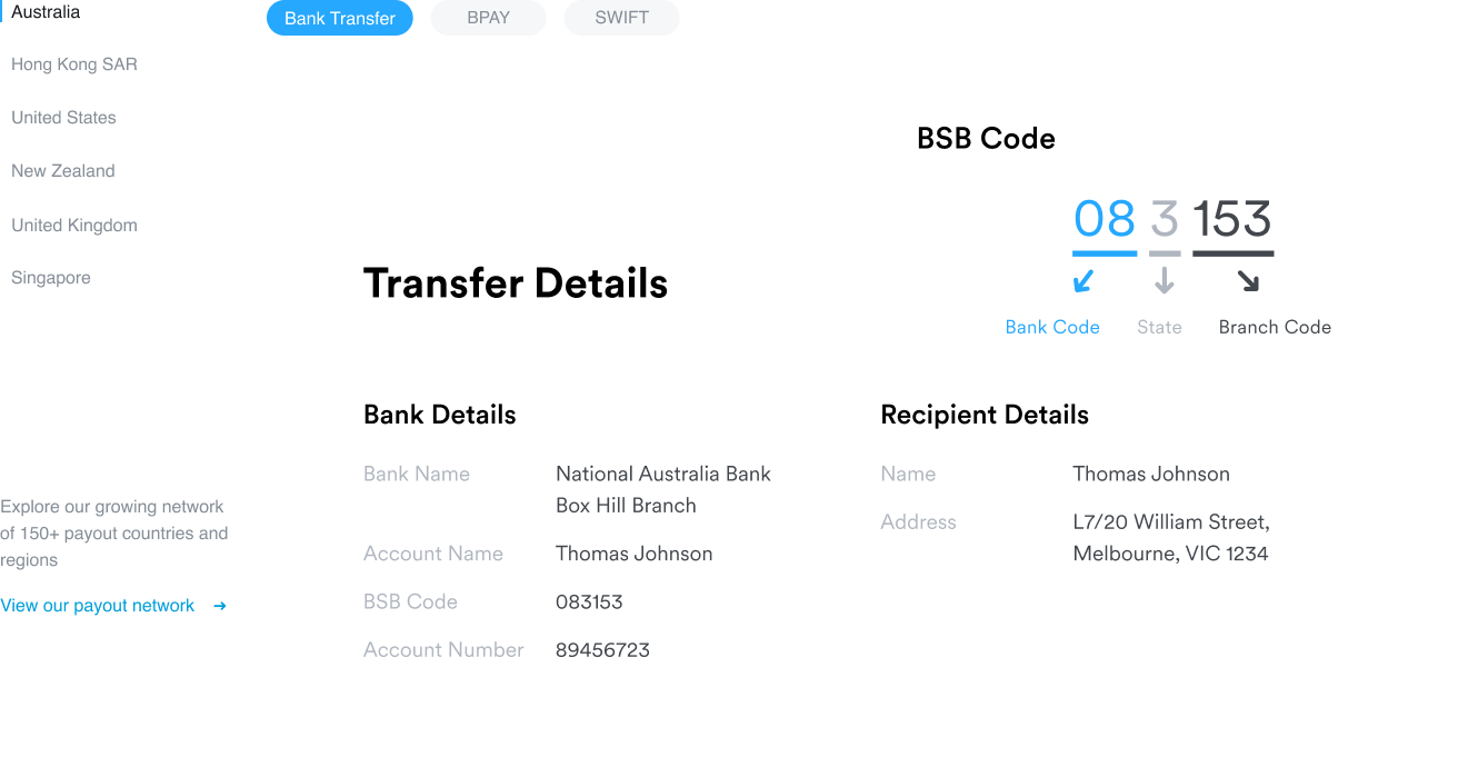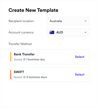 Quoterite Pay powered by Airwallex provides an extensive range of local and international transfer options, ensuring you always get the fastest and most cost-effective solution for your needs.