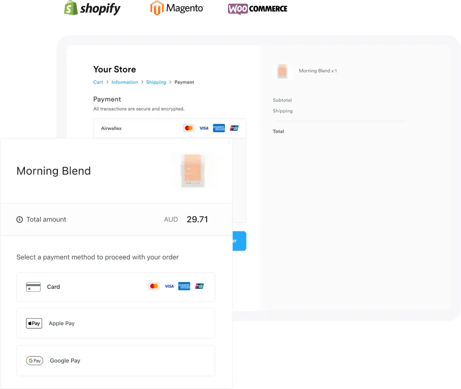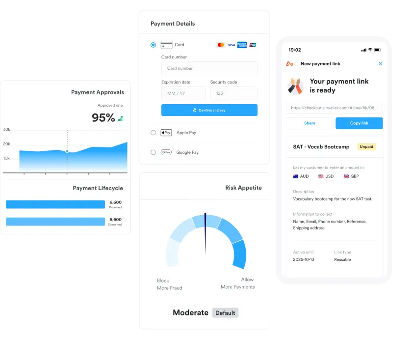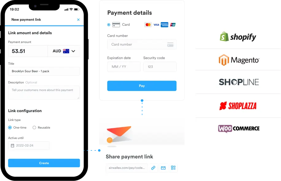 Quoterite Pay powered by Airwallex allows you to securely accept payments from customers worldwide while minimizing unnecessary fees. Integrate seamlessly with popular global eCommerce platforms or create and share your own Payment Links with ease.