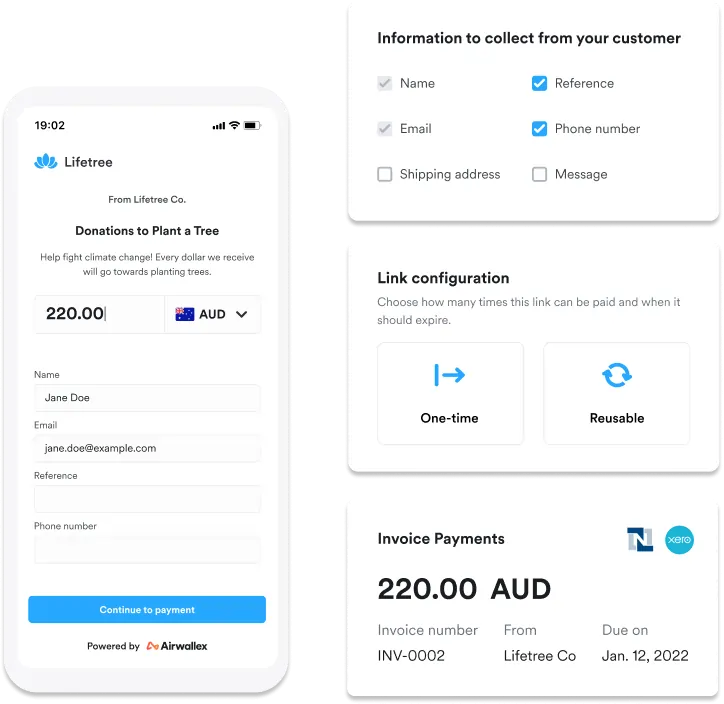 Start selling online effortlessly with Payment Links—no website or coding required. Create, customise, and share your links in just a few clicks via social media, email, and more. Track payments in real-time and seamlessly integrate Payment Links with your accounting software.